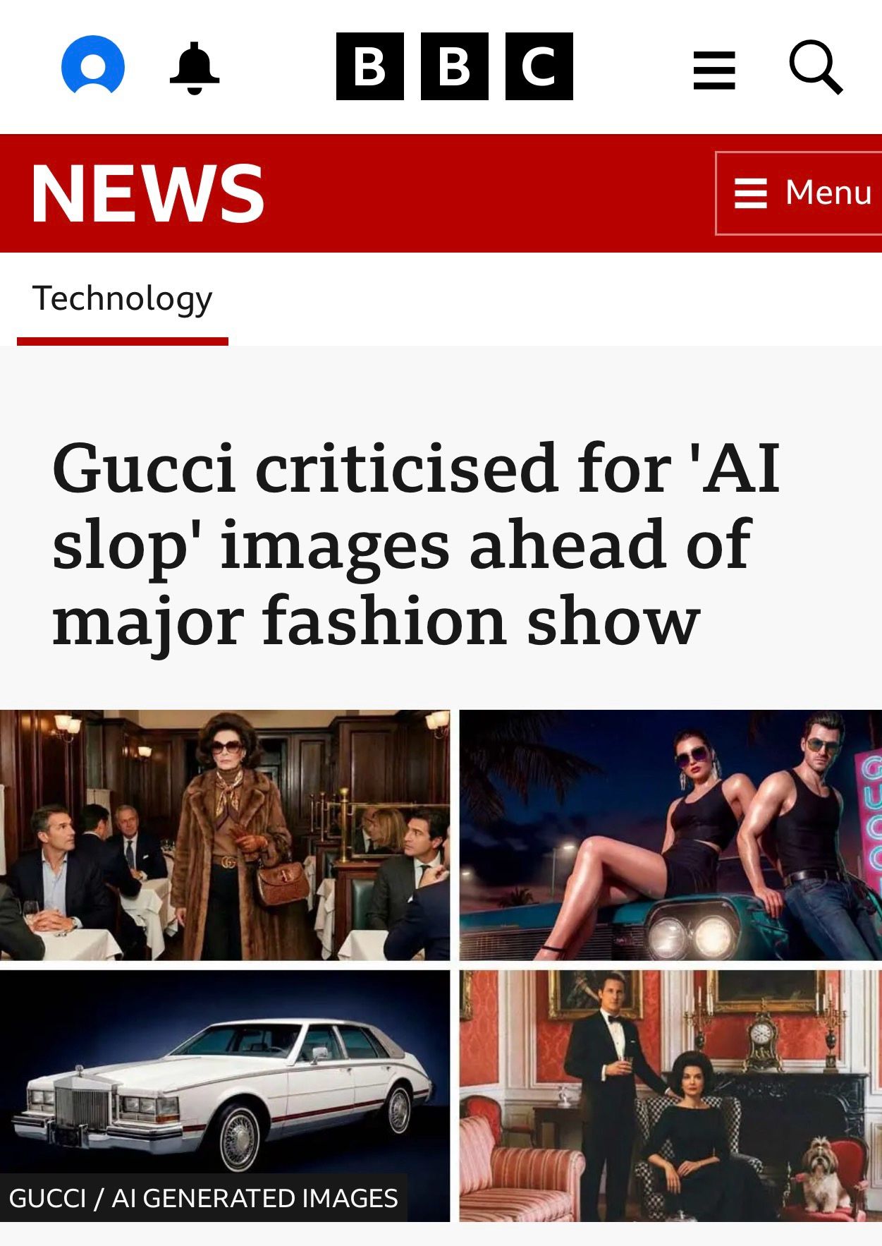 We saw this play out in the reaction to Gucci’s recent AI work, led by Demna, the house’s Creative Director.